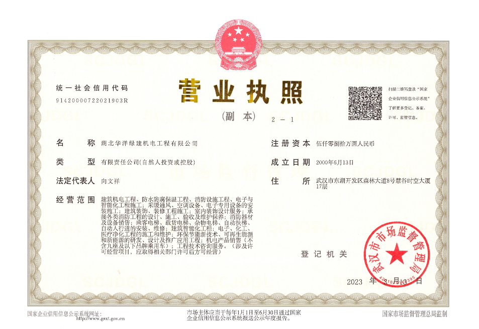 湖北華洋綠建機(jī)電工程有限公司是一家專業(yè)從事機(jī)電工程咨詢、設(shè)計(jì)、施工承包、售后服務(wù)、維修維護(hù)保養(yǎng)的全過程服務(wù)商,是中央空調(diào)系統(tǒng)節(jié)能咨詢、施工承包、運(yùn)營能源管理的專業(yè)服務(wù)商,是電梯工程、潔凈室工程的專業(yè)承包商。公司具有建筑機(jī)電安裝工程專業(yè)承包壹級(jí)資質(zhì)、機(jī)電工程施工總承包叁級(jí)資質(zhì)、中華人民共和國特種設(shè)備生產(chǎn)許可證電梯安裝(含修理)A2級(jí)資質(zhì)、電子與智能化工程專業(yè)承包貳級(jí)資質(zhì)、消防設(shè)施工程專業(yè)承包貳級(jí)資質(zhì)、防水防腐保溫工程專業(yè)承包貳級(jí)資質(zhì)及建筑裝飾裝修工程專業(yè)承包貳級(jí)資質(zhì)。